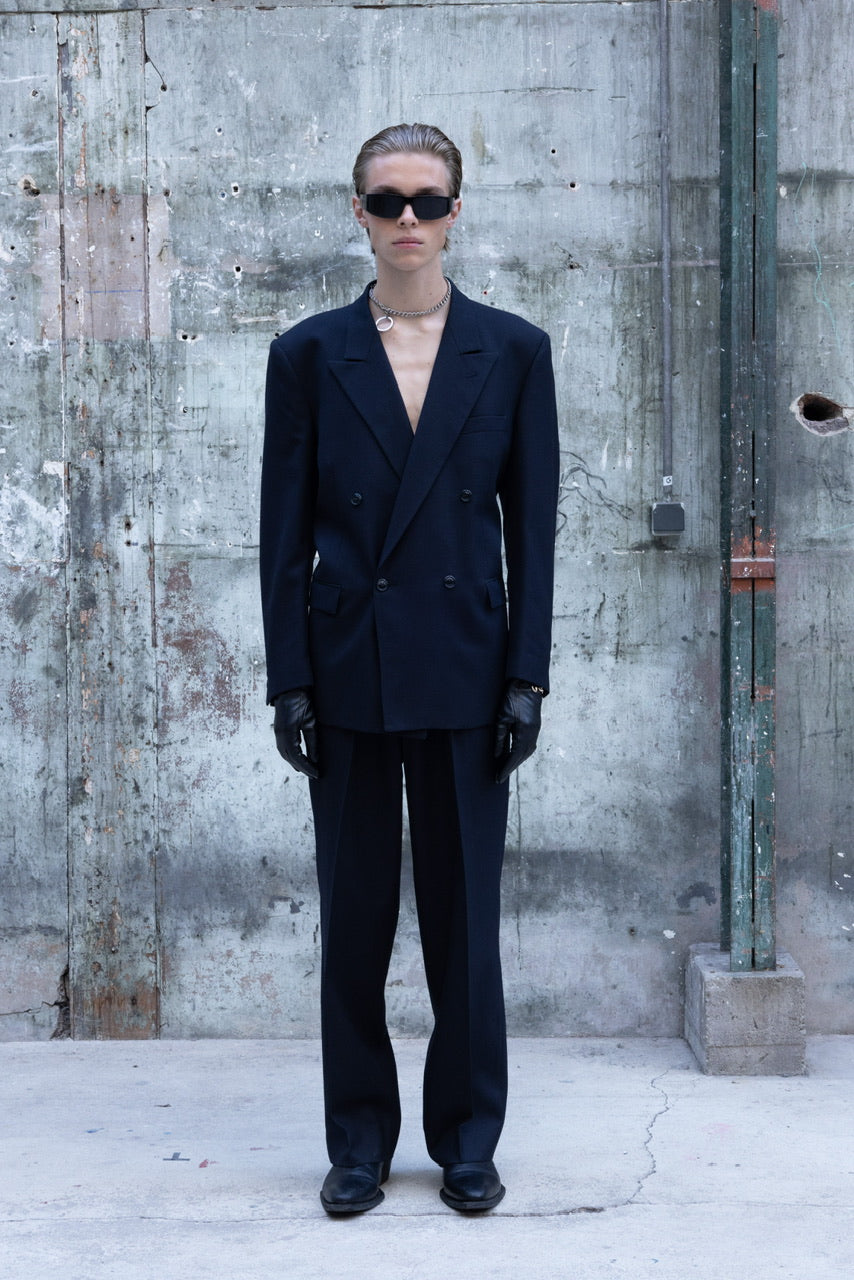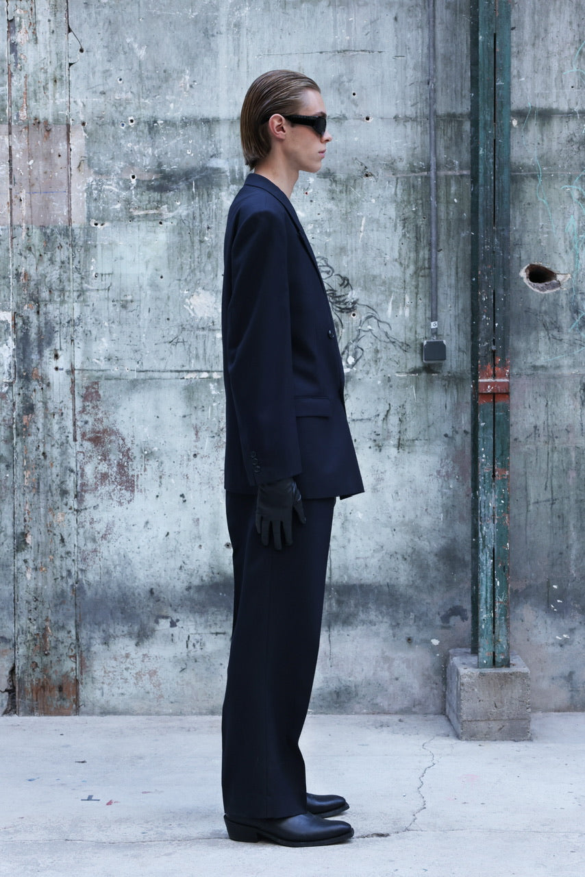 Complet croisé vintage avec une veste à col large et un pantalon évasé.