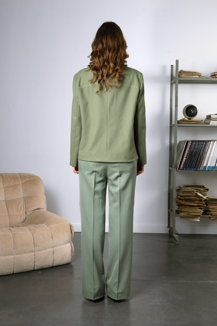 Ensemble dépareillé , veste avec poches à rabat et pantalon évasé. Coupe nette et silhouette typique des années 70.Idéal pour une tenue professionnelle ou habillée.
